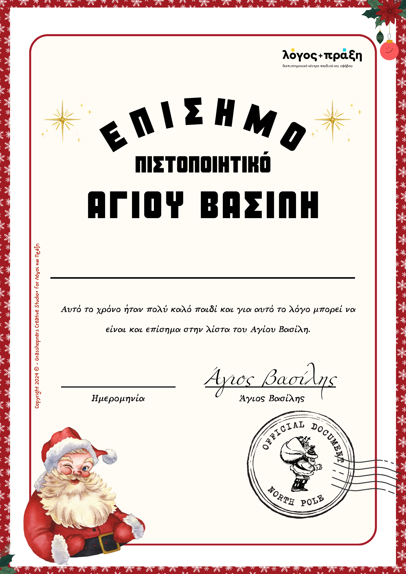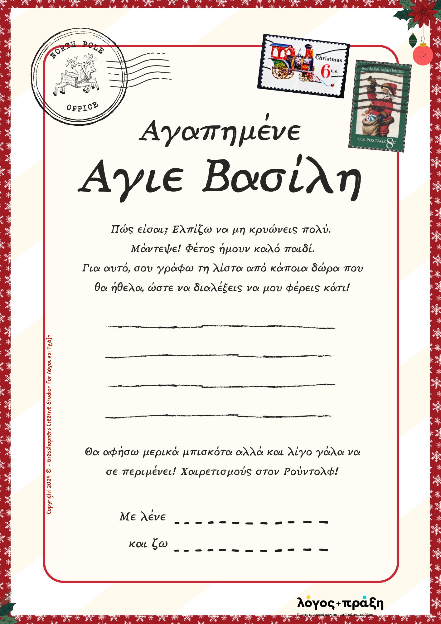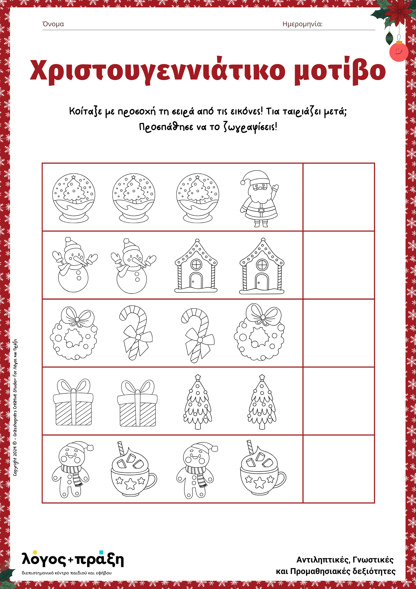Το Χριστουγεννιάτικο Βιβλίο Δραστηριοτήτων είναι το δικό μας δώρο για εσάς και τα παιδιά σας! Σε συνεργασία με το The Grasshoppers Creative Studio+, δημιουργήσαμε ένα βιβλιαράκι γεμάτο παιχνίδι και μάθηση.