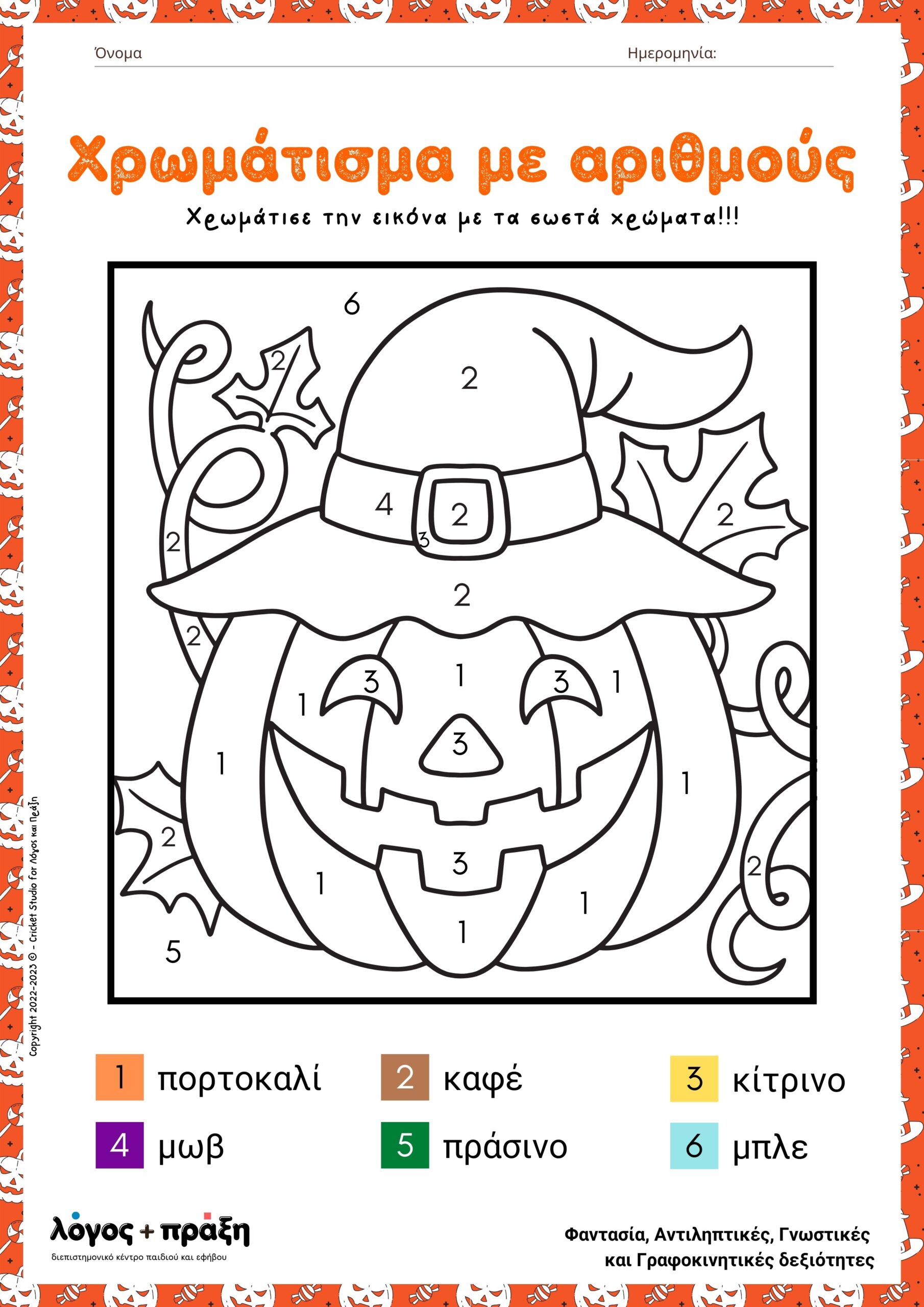 Το Halloween σε λίγες μέρες είναι εδώ..! Και τι καλύτερο από ένα βιβλίο με Halloween υλικό, δραστηριοτήτες και παιχνίδια, όπως χρωμοσελίδες με αριθμούς και χρώματα;