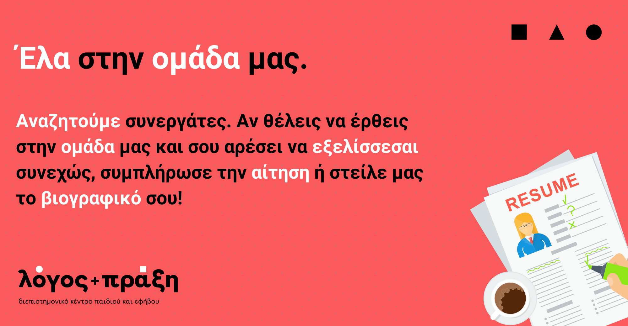 Οι ενδιαφερόμενοι παρακαλούνται να αποστείλουν το βιογραφικό τους μαζί με ένα σύντομο συνοδευτικό σημείωμα στο email: info@logoskaipraksi.gr