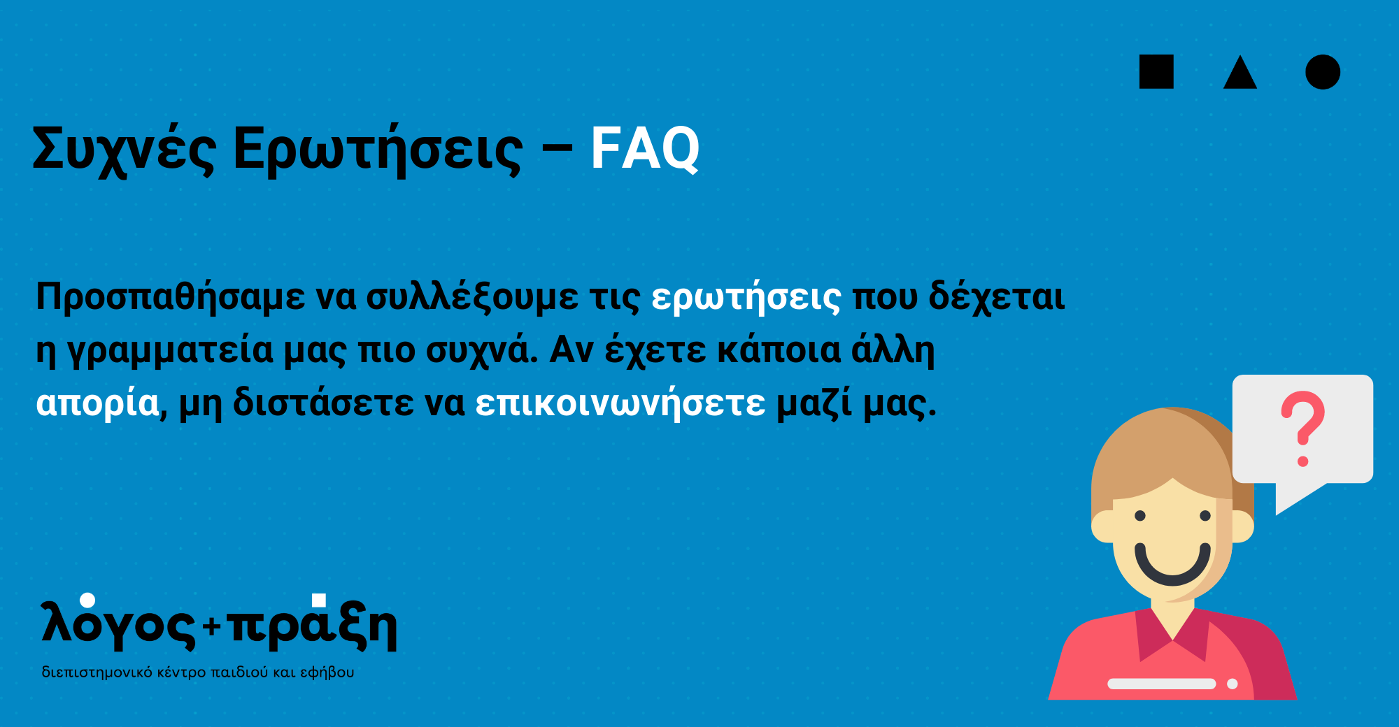Μπορείτε να επικοινωνήσετε μαζί μας τηλεφωνικά στο 26410 52270 είτε μέσω email στο info@logoskaipraksi.gr. Επίσης, κλείστε ένα ραντεβού μέσω της ιστοσελίδας μας